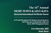브릿지저널 김경미 기자 | 지식재산처는 세계지식재산기구(WIPO) 및 한국발명진흥회(KIPA)와 공동으로 11월 3일~ 6일까지 한국지식재산센터(서울 강남구)에서 '국제 지식재산 전문가 인증과정(AICC)'을 개최한다. 올해는 지식재산처·WIPO·KIPA가 공동 개발한 지식재산(IP) 비즈니스 교육 e러닝 콘텐츠인 IP 파노라마 2.0을 활용해 온라인 과정을 수료한 119개국 1,364명 중 23개국 35명의 우수 학습자를 최종 선발해 서울에서 오프라인으로 심화 교육을 진행한다. 이번 교육을 통하여 세계 각국의 지식재산 전문가들이 지식재산 경영 및 활용 전략을 수립하는데 도움을 받을 수 있을 것으로 기대된다. 이번 오프라인 교육 과정은 국제 비즈니스 경영 측면에서 지식재산의 효과적인 활용과 관련된 ▲ 지식재산(IP) 가치 평가 및 금융 ▲ 인공지능(AI) 등 최신 IP 동향 ▲ 특허등급 평가 및 활용 사례 ▲ IP 면허 전략 ▲ IP 면허 협상을 위한 실습 등으로 구성됐다. 특히, 창업초기기업ㆍ개척기업을 위한 IP 경영전략 수립 방법, 분쟁 대응전략 등의 내용도 포함되어 있어 경영 실무역량 배양에 도움이 될 것으로 기대된