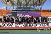브릿지저널 윤나영 기자 | 지난 1일 원주종합운동장에서 열린 ‘2025 원주시민 체육대회’가 시민들의 뜨거운 참여와 응원 속 성황리에 마무리됐다. 원주시체육회가 주최·주관한 이번 대회는 원주시 승격 70주년을 기념해 열렸으며, 25개 읍면동에서 3천여 명의 선수단과 시민들이 참여해 세대와 지역을 아우르는 시민 화합의 대축제로 펼쳐졌다. 개회식에는 원강수 시장과 조용기 시의장을 비롯해 지역 국회의원, 기관·단체장 등이 참석해 선수단을 격려하고, 읍면동별 입장 퍼레이드와 단체 퍼포먼스를 함께 관람하며 축제 분위기를 더했다. 읍면동별 입장식에서는 각 지역의 특색을 살린 다채로운 퍼레이드와 퍼포먼스가 진행돼 관람객들의 큰 호응을 얻었다. 또한 원주시 홍보대사 공훈의 축하공연 등을 통해 시민들의 눈과 귀를 즐겁게 하며 흥겨운 축제의 장을 만들었다. 경기는 고령화 비율에 따라 1부와 2부로 나누어 진행됐으며, 5인6각 달리기, 단체줄넘기, 여자 PK, 파크골프 퍼팅, 훌라후프, 줄다리기, 혼성이어달리기 등 남녀노소 누구나 참여할 수 있는 생활체육 중심의 프로그램으로 구성돼 즐거운 함께한 체육 한