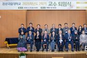 브릿지저널 김경미 기자 | 경상국립대학교는 2월 27일 오후 2시 가좌캠퍼스 박물관 1층 대강당에서 2025학년도 2학기 교수 퇴임식을 개최했다. 교수 퇴임식은 후학양성과 대학발전을 위해 커다란 발자취를 남기고 정년을 맞아 퇴직하는 교수들의 공로를 기리기 위해 마련됐다. 이날 행사는 국민의례, 퇴직자 약력 소개, 훈포장 전수, 전별금 증정, 축사, 퇴임사, 기념촬영 등의 순으로 진행됐다. 권진회 총장은 “경상국립대학교가 대한민국을 대표하는 국가거점국립대학교로 자리매김하고, 세계와 당당히 경쟁하는 연구 역량을 갖추게 된 밑바탕에는 교수님들의 땀과 헌신이 있었다.”라며 “교수님들께서 진리 탐구의 길에서 보여주신 엄정함과 성실함은 제자들에게 학자의 자세를 가르쳐 주었고, 지역사회를 향한 따뜻한 시선과 실천은 대학이 나아가야 할 방향을 일깨워 주었다.”라고 말했다. 권진회 총장은 “교수님들의 연구는 지역 산업과 정책, 문화 발전에 깊이를 더했고, 그 가르침을 받은 제자들은 각자의 자리에서 사회를 이끄는 주역으로 성장했다.”라며 “앞으로도 명예교수로서 대학과 지역을 향한 지혜의 등불이 되어 주시기를 부탁드린다.”라고 강