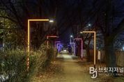 브릿지저널 김경미 기자 | 양천구는 신정교에서 오금교에 이르는 약 500m 구간의 안양천 제방 산책로에 다양한 경관조명을 설치해 안전하고 매력적인 장소로 재탄생시켰다고 4일 밝혔다. 안양천은 도심과 하천이 어우러진 양천구의 대표적인 자연명소로, 낮에는 물론 밤에도 많은 주민들이 산책과 운동 등 여가를 즐기는 공간이다. 이에 구는 주민들이 더욱 활력있는 여가활동을 즐길 수 있도록, 2023년 신정교 하부 경관조명 설치를 시작으로 ‘안양천 야간경관 개선사업’을 단계적으로 추진하고 있다. 두 번째로 추진된 이번 경관개선사업은 구간별 특성과 계절의 변화를 고려한 특화된 조명 디자인을 적용해 감성적인 야경을 연출한 것이 특징이다. 산책로 초입에는 LED 보안등을 설치하여 바닥면을 고르게 밝히고 전체적인 조도를 보강해 보행자의 시야 확보와 안전성을 높였다. 왕벚나무가 양쪽으로 식재된 중앙구간에는 2m 높이의 폴 조명을 설치해 수목의 입체감과 공간감을 극대화하고, 4,000K(켈빈)의 중간 밝기 백색 조명으로 야간에도 이용자들이 쾌적하게 산책을 즐길 수 있도록 했다. 특히 해당 구간은