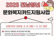 브릿지저널 김경미 기자 | 무안군은 청년의 문화생활과 자기계발을 지원하기 위해 ‘2026년 전남 청년 문화복지카드 지원사업’ 대상자를 모집하고 있다고 밝혔다. 올 2월 한 달간 접수 결과 방문 신청 170건, 온라인 신청 2,075건 등 총 2,245건이 접수됐으며, 군은 아직 신청하지 못한 청년들이 지원을 받을 수 있도록 3월 말까지 추가 접수를 진행할 예정이다. 지원 대상은 2024년 2월 9일 이전부터 전라남도에 주소를 두고 무안군에 2년 이상 거주한 19세부터 28세까지(1998~2007년 출생) 청년이다. 대상자로 선정되면 1인당 연 25만 원의 문화복지비를 체크카드 포인트 형태로 지원받게 된다. 문화복지비는 전라남도 내에서 도서 구입, 영화·공연 관람, 학원 수강, 여행 등 문화복지 분야에 사용할 수 있으며 온라인 결제와 타 시·도 사용은 제한된다. 한승헌 인구정책과장은 “문화복지카드 지원사업이 청년들의 문화활동과 자기계발에 도움이 되길 바란다”며 “앞으로도 청년 지원 정책을 지속적으로 추진해 나가겠다”고 말했다. 신청은 농협카드 누리집 또는 앱을 통한 온라인 신