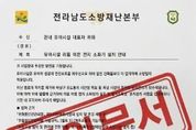 브릿지저널 김경미 기자 | 해남소방서가 최근 전라남도소방재난본부를 사칭해 관내 유아시설 들에 소방시설 설치를 강요하는 허위 공문이 유포되고 있어 관계자들의 각별한 주의가 필요하다고 11일 밝혔다. 이번에 발견된 허위 문서(사진 참조)는 ‘유아시설 리튬 이온 전지 소화기 설치 안내’라는 제목으로 관내 유아시설 대표자들을 수신자로 발송됐다. 해당 문서는 소방 관련 법령을 교묘하게 짜깁기하여 유아시설 내 리튬 이온 소화기 및 질식소화포 비치를 법적 의무인 것처럼 위장하고 있다. 특히, 기한 내 미설치 시 시정명령, 사용정지, 과태료 부과 등 행정처분이 이루어질 수 있다고 협박하고 현장점검까지 예고해 관계자들의 불안감을 조성하고 있다. 이는 가짜 공문을 통해 특정 소방용품의 구매를 유도하는 전형적인 ‘소화기 강매 사기’ 수법이다. 해남소방서 관계자는 “소방관서에서는 어떠한 경우에도 공문을 통해 특정 업체의 소화기나 소방시설 구매를 직접적으로 강요하거나 알선하지 않는다”며 “이러한 우편물이나 팩스를 수령할 경우 절대 문서에 기재된 번호로 연락하거나 물품을 구매하지 말고 즉시 해남소방서나 경찰에