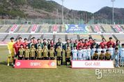 브릿지저널 김경미 기자 | 창원FC가 2026 시즌의 첫 단추를 완벽하게 꿰며 K3리그 강자의 면모를 과시했다. 8일 창원축구센터에서 열린 당진시민축구단과의 홈 개막전에서 창원FC는 1:0으로 승리를 거두며 1,500여 안방 팬들에게 기분 좋은 시즌 첫 승전보를 선사했다. 축제의 서막은 풍성한 이벤트가 열었다. TV, 스타일러, 무선청소기 등 필수 가전제품 위주의 푸짐한 경품 추첨은 경기장을 찾은 팬들의 설렘을 자극했다. 경기장 앞 광장에 마련된 에어바운스와 키즈 드로잉 존은 어린이 팬들로 가득했고, 타투 스티커와 응원 짝짝이를 손에 쥔 시민들은 하나 된 마음으로 응원전에 나섰다. 다채로운 먹거리를 제공한 푸드트럭과 함께 치어리더, 태권도 시범단의 화려한 퍼포먼스가 이어지며 창원축구센터는 경기 시작 전부터 뜨겁게 달아올랐다. 그라운드 안에서도 창원FC의 기세는 대단했다. 동계 기간 담금질을 마친 조직력은 실전에서 더욱 빛을 발했다. 선수들은 2026년 슬로건인 ‘함께 뛰는 심장’의 의미를 증명하듯 투혼을 발휘했고, 관중석을 가득 메운 팬들은 일제히 응원 짝짝이를 흔들며 선수들에게 힘을 실었다. 경기 내내 팽팽하던 흐름은 후