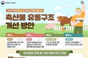 브릿지저널 김경미 기자 | ■ 소비자 부담은 줄이고 생산자 소득은 올리는 '축산물 유통 구조 개선 방안' (목표 1) 한우 - 사료 유통비용 각각 10% 절감 및 도소매 가격 연동성 강화 (목표 2) 돼지 - 거래가격 투명성 제고 및 삼겹살 규격 강화, 기후 변화 대응 생산성 향상 지원 (목표 3) 닭고기·계란 - 가격 조사 체계 개편 및 등급제 활성화 (목표 4) 온라인 - 온라인 거래 활성화 및 가격 비교 서비스 확대 ■ 4대 중점 과제 및 10대 세부 추진 과제 01. 한우 유통 효율화 및 사육 방식 개선 - 한우 유통 효율화(농협) 및 직거래 확산 - 한우고기 판매장 유형별 소·도매가격 연동성 강화 - 한우 사육 방식 개선 및 단기 비육 한우고기 유통 02. 돼지 거래가격 투명성 강화 및 삼겹살 규격 강화 - 경매 물량 확대 및 거래가격 수집·제공 - 삼겹살 규격 강화 및 부위 세분화 - 돼지 생산 관리 인증제 도입 및 기후변화 대응 생산성 향상 지원 03. 닭고기·계란 가격 조사 개선 및 계란 등급제 활성화 - 닭고기·계란 가격 조사 체계
