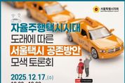 브릿지저널 김경미 기자 | 서울특별시의회 교통위원회(위원장 이병윤, 국민의힘, 동대문1)는 2025년 12월 17일 10시, 서울시의회 의원회관 제2대회의실에서 “자율주행택시시대 도래에 따른 서울택시 공존방안 모색 토론회”라는 주제로 토론회를 개최했다. 서울시의회가 주최하고 교통위원회가 주관한 이번 토론회는 이병윤 교통위원장 개회사로 시작됐으며 김동완 서울특별시택시운송사업조합 이사장의 축사와 함께 문성호 서울시 의원이 사회를 맡았다. 자율주행택시에 대한 주제 발제는 한국개발연구원(KDI) 김동영 전문연구원이 진행했으며, 이어지는 토론에서는 이경숙 교통위원회 부위원장이 좌장을 맡아 논의를 이끌었다. 토론자로는 김거중 한국교통연구원 부연구위원, 장정아 아주대학교 연구교수, 이우영 HC택시 대표이사, 박준환 국회입법조사처 팀장, 정준호 서울시 의원, 손형권 택시정책과장이 참여하여 토론이 진행됐다. 이 날 토론회에서는 자율주행 시대의 도래에 발맞춰 택시 산업의 지속 가능한 발전을 위한 준비가 필요하다는 데에 공감대를 형성했다. 아울러 기존 택시 시장과 첨단기술이 상생할 수 있는 자율주행 서비스 도입 방안을 모색하고,