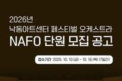 브릿지저널 윤나영 기자 | 부산 강서구는 서부산 최초의 클래식 전문 공연장인 낙동아트센터와 함께할 ‘낙동아트센터 페스티벌 오케스트라(NAFO)’ 단원을 공개 모집한다고 밝혔다. 이번 모집을 통해 강서구는 수준 높은 음악적 역량과 열정을 지닌 연주자들로 오케스트라를 구성해, 향후 낙동아트센터에서 품격 있는 클래식 공연을 시민들에게 선보일 계획이다. NAFO는 내년 1월 낙동아트센터 정식 개관 기념 무대에서 말러 교향곡 제8번, 오페라 아이다, 발레 백조의 호수 등 세계적인 명작을 연주할 예정이다. 이에 앞서 오는 12월 24일, 말러 교향곡 제8번과 베토벤 교향곡 제9번 4악장을 연주하는 프리뷰 콘서트를 개최해, 정식 개관 전부터 웅장한 음악의 울림을 선사하며 낙동아트센터에 대한 시민들의 기대감을 높일 전망이다. 모집 분야는 ▲오케스트라 악장 ▲수석 ▲단원 ▲기획지원단원이며, 만 18세 이상이면 누구나 지원 가능하다. 접수 기간은 10월 10일부터 16일 오후 5시까지로, 강서구청 홈페이지에서 참여신청서를 내려받아 전자메일로 제출하면 된다. 전형은 기획지원단원의 경우 면접, 오케스트라 단원의 경우 실