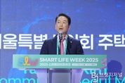 브릿지저널 김경미 기자 | 서울특별시의회 주택공간위원회 김태수 위원장(국민의힘, 성북구 제4선거구)은 9월 30일 오후 1시, 서울 코엑스에서 열린 ‘스마트라이프위크 2025’(이하 ‘SLW 2025’) 개막식 행사에 참석하여, 오세훈 서울시장의 개회사에 이어 성공적인 행사 개최를 위한 환영사를 전했다. ‘SLW 2025’는 2024년도에 이어 올해 2회를 맞았으며 스마트시티부터 AI․로봇․기후테크까지 최첨단 미래 기술을 선보이는 행사로, 세계 80개국 121개 도시, 330개 기업이 참여하는 등 작년보다 두 배 가까운 규모로 확대 됐다. 특히, 지난 2024년 상임위 행정사무감사에서는 ‘콘텐츠의 다양성과 홍보 부족’ 등이 지적된 바 있는데, 이번 행사는 다양한 홍보 채널을 확대했고, 전시 분야 역시 확장함으로써 시민의 참여와 행사의 위상이 한층 높아졌다. 이번 개막식에는 오세훈 서울시장을 비롯해 해외 주요 도시 시장단, 국제기구 대표, 주한 대사, 기업·학계 인사 등 200여 명이 참석했으며, 행사 시작과 함께 공개된 디지털 휴먼 ‘AI 시장’ 영상은 서울의 AI 철학과 비전을 선보이며 눈길을 끌었다. &nb
