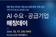 브릿지저널 정보영 기자 | 제주특별자치도와 제주테크노파크는 17일 오후 2시 첨단과기단지 내 이스트소프트 제주캠퍼스에서 ‘제주 바이오기업 인공지능 전환(AX)을 위한 인공지능(AI) 수요·공급 매칭 행사’를 개최한다. 이번 행사는 제주도가 지난 10월 중소벤처기업부의 ‘지역 주도형 인공지능(AI) 대전환 사업’ 공모에 선정되면서 본격 추진됐다. 도내 바이오기업을 대상으로 사업을 소개하고, 실제 지원을 받을 참여 기업을 모집하는 자리다. 제주도는 이번 사업으로 ‘인공지능(AI) + B(바이오) AX 대전환 선도모델 구축’을 내걸고 도내 바이오기업 경쟁력을 높여나간다. 도내 바이오기업 50개사와 도내외 인공지능(AI) 솔루션 공급기업 30개사를 모집하고 있으며, 기업 간 매칭을 진행하고, 최종 도내 20개 내외 기업에 맞춤형 인공지능(AI) 솔루션을 제공할 계획이다. 인공지능(AI) 솔루션을 도입하면 바이오기업의 생산성과 효율성이 높아져 매출 증가는 물론 기술 연구개발(R&D)도 활발해질 전망이다. 행사에서는 지원사업 소개와 바이오기업의 인공지능(AI) 도입 성공 사례를 발표하고, 향후