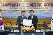 브릿지저널 정보영 기자 | 제주특별자치도가 재생에너지 활용 과정에서 발생하는 전력 불균형 문제를 해소하기 위해 인공지능(AI) 기반 전력중개 플랫폼 기업 브이젠㈜과 협력한다. 제주도는 15일 오후 4시 30분 도청 백록홀에서 브이젠㈜과 신설 투자 및 신규 채용 등을 주요 내용으로 하는 투자협약을 체결했다. 협약식에는 오영훈 제주도지사와 경제활력국장, 기업투자과장, 분산에너지정책팀장, 대외협력특보, 에너지특보 등 도 관계자와 백승엽 브이젠 대표, 김규태 이사, 김명진 프렌드투자파트너스 상무 등이 참석했다. 브이젠은 인공지능(AI) 기술로 전력 생산량과 수요를 실시간으로 예측·조절하는 전력중개 플랫폼 기업이다. 전국 곳곳에 흩어진 태양광 발전소, 전기차 배터리, 건물 에너지저장장치(ESS) 등을 하나의 가상발전소(VPP)처럼 통합 운영하는 기술을 보유하고 있다. 날씨에 따라 생산량이 들쭉날쭉한 재생에너지를 AI가 예측하고 조절해, 안정적으로 전기를 공급하고 거래할 수 있게 만드는 게 핵심이다. 본사를 JDC 스마트빌딩으로 이전해 제주를 거점으로 사업을 전개하고 있으며, 2027