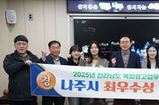 브릿지저널 김경미 기자 | 전라남도 나주시가 불법광고물 정비 강화, 건전한 광고문화 확산, 폐현수막 재활용체계 구축 등 전방위적인 도시환경 개선 노력을 인정받아 ‘2025년 전라남도 옥외광고업무 평가’에서 ‘최우수상’을 수상했다. 나주시(시장 윤병태)는 이번 평가에서 폐현수막 재활용 시범사업 추진, 올바른 광고문화 기반 조성, 불법광고물 정비 등 여러 주요 항목에서 고르게 높은 점수를 받으며 최우수 기관으로 선정됐다고 2일 밝혔다. 시는 폐현수막 재활용을 위한 협약 체결, 집하장 설치 등 재활용 인프라를 구축하고 폐현수막 활용을 촉진하는 생활 실천 캠페인을 지속 추진해왔다. 더불어 좋은 간판 지원사업을 통해 도시경관 개선을 유도하고 현수막 새활용 사업단 운영으로 환경보호 활동도 병행했다. 불법광고물 정비 또한 중점적으로 추진하며 주요 생활권역에 클린존을 조성해 상시 정비체계를 구축하고 시민들과 함께 불법광고물 근절 캠페인을 펼쳐 깨끗한 도시환경 조성을 위한 공감대를 넓혀가고 있다. 윤병태 나주시장은 “지속적인 정비와 재활용 기반 확충은 시민이 체감하는 도시미관 개선의 핵심”이라며 “안전