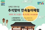 브릿지저널 김경미 기자 | 남해군은 추석 연휴 기관 남해유배문학관과 남해탈공연박물관에서 명절 맞이 민속놀이 체험을 진행한다고 밝혔다. 남해유배문학관에서는 기존의 박물관 체험프로그램에 더해 투호(投壺)놀이와 윷놀이를, 남해탈공연박물관에서는 팽이치기, 딱지치기, 사방치기 등 가족과 함께 즐길 수 있는 다양한 프로그램을 즐길 수 있다. 이번 추석 연휴(10.3.~10.9.)에는 추석 당일(10.6.)을 제외한 전 연휴 기간 동안 남해유배문학관, 남해탈공연박물관, 바래길작은미술관(남해군 남면 남면로1739번길 46), 뮤지엄남해(남해군 창선면 연곡로 13) 등 관내 문화시설들이 모두 정상운영된다. 보물섬시네마(남해군 남해읍 선소로 12)는 추석 당일에도 손님을 맞을 예정이다. 김지영 문화체육과장은 “고향에 방문하는 귀성객들이 가족, 친지들과 문화시설에서 민속놀이를 즐기며 행복한 한가위를 맞이하시길 바란다.”고 밝혔다.