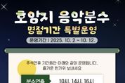 브릿지저널 김경미 기자 | 충주시는 도심 속 이색 명소로 자리매김한 호암지 음악분수의 가을철 운영 일정을 조정해 시민과 관광객들에게 한층 다채로운 볼거리를 제공한다고 밝혔다. 호암지 음악분수는 물과 빛, 음악이 어우러진 환상적인 공연으로 시민들의 일상 속 특별한 휴식처이자 대표적인 야간 명소로 평가받고 있다. 시는 계절 변화와 일몰 시각 단축에 맞춰 10월 1일부터 11월 16일까지 야간 공연 시간을 기존 오후 8시 30분에서 오후 8시로 앞당겨 운영한다. 주간 공연은 평일 오후 2시와 4시, 주말에는 오전 10시, 오후 2시, 오후 4시로 기존과 동일하게 진행된다. 다만, 시설 유지관리를 위해 매주 월요일은 휴장하며, 강우나 강풍 등과 같은 기상 상황에 따라 공연이 중단될 수 있다. 특히, 추석 연휴 기간인 10월 2일(목)부터 10월 12일(일)까지 11일간은 휴장 없이 특별 운영된다. 이 기간에는 오전 10시, 오후 2시, 오후 4시에 각각 20분 동안 분수 공연을 선보이며, 야간에는 오후 8시에 화려한 조명과 레이저 연출이 어우러진 특별 공연이 20분간 펼쳐질 예정이