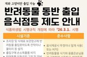 브릿지저널 김경미 기자 | 사천시는 지역 내 일반음식점·휴게음식점·제과점을 대상으로 반려동물 동반 출입 음식점을 신청받아 운영할 예정이다. ‘반려동물 동반 출입 음식점’은 식품위생법 시행규칙 개정에 따라 2026년 3월 1일부터 시행되는 제도이다. 이에 따라 반려동물 출입이 가능한 음식점은 시설기준과 준수사항을 갖춰 영업을 개시해야 한다. ‘반려동물 동반 출입 음식점’을 하려는 영업자는 ‘반려동물 동반 영업장’이라는 표시를 하여야 하며, 반려동물이 식품취급시설(조리장 등)에 접근을 하지 못하도록 시설을 갖추어야 한다. 반려동물은 개와 고양이로 한정된다. 또한, 위생관리를 위하여 음식 제공시에는 뚜껑이나 덮개를 사용하거나 비치하여야 하며, 반려동물 전용 쓰레기통을 비치하여야 한다. ‘반려동물 동반 출입 음식점’ 운영을 시작하기 전에, 사전검토 신청서와 체크리스트를 사천시청 보건위생과에 제출한 뒤 현장 점검을 통과해야 영업을 개시할 수 있다. 다만 기존에 영업신고 된 업소는 2월 27일까지 관련 서식을 반드시 제출하여야 한다. 자세한 사항과 관련 서식