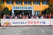 브릿지저널 윤나영 기자 | 울주군여성단체협의회가 19일 서생면 사랑나눔센터에서 이순걸 울주군수, 울주군여성단체협의회 회원, 대한유화 자원봉사자 등 70여명이 참여한 가운데 ‘2025년 울주군 김장김치 나눔행사’를 개최했다. 매년 진행하는 울주군 김장김치 나눔행사는 지역사회의 따뜻한 나눔 확산에 기여하고, 물가 상승으로 인한 어려운 이웃의 경제적 부담을 덜어주기 위해 마련됐다. 이날 참석자들은 절임배추와 무 3천㎏에 빛깔 좋은 국산양념을 정성스럽게 버무려 김장김치를 담갔다. 김장김치는 울주군 한부모가족, 울주군 드림스타트 대상 아동 등 취약계층 550세대(세대당 10㎏)에 전달할 예정이다. 김옥희 회장은 “이번 김장김치 나눔행사가 도움이 꼭 필요한 분들에게 작은 위로와 힘이 되길 바란다”고 말했다.