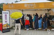 브릿지저널 김경미 기자 | "사고, 즐기고, 느끼는 시장!" 단양구경시장이 대한민국 대표 소비 축제인 '대한민국 동행축제'에 참여하며 시장에 축제 분위기를 더하고 있다. 9월 26일 오후 1시부터 시장 내 문화광장에서 진행된 이번 행사는 방송인 최기정 씨의 유쾌한 진행과 함께 상인들과 방문객들이 하나 되는 화합의 장을 연출했다. 이번 행사는 내수 경제 활성화와 지역민 및 관광객 유입 증대를 목표로 마련됐다. 시장을 찾은 고객들은 1만 원 이상 구매한 영수증(카드, 현금, 제로페이 가능)만 있으면 즉석에서 경품 이벤트에 참여할 기회를 얻었다. 문화광장에 마련된 이벤트 부스에는 상품을 구매한 후 인증을 받으려는 고객들의 발길이 끊이지 않았다. 룰렛 돌리기와 경품 응모함 추첨 등 소규모 이벤트가 진행되는 동안, 사람들의 웃음소리와 환호성이 시장 전체에 울려 퍼졌다. 현장에서 만난 한 관광객(서울, 30대)은 "단양구경시장에 맛있는 먹거리가 많아 만 원 채우는 건 일도 아니다"라며, "물건도 사고 덤으로 경품까지 받을 수 있어 '만원의 행복'을 제대로 누렸다"며 만족감을 드러냈다. 다른 지역 주민(단양읍,