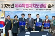 브릿지저널 정보영 기자 | 제주시는 12월 30일 오전 10시 시청 1별관 회의실에서 ‘2025년 하반기 시정발전 유공 시민 표창 수여식’을 개최하고, 지역사회 곳곳에서 헌신해 온 시민과 단체에 감사의 뜻을 전했다. 이번 표창은 주민자치 활성화, 자원봉사, 생활체육, 환경보호, 지역경제 활성화, 안전문화 확산, 사회복지 증진, 재난관리 등 다양한 분야에서 묵묵히 지역을 위해 헌신해 온 시민과 단체 103명의 노고에 감사와 축하의 뜻을 전하기 위해 마련됐다. 이날 수여식에는 사회복지 발전에 기여한 지역사회보장협의체 문태훈 위원을 비롯한 34명이 도지사 표창을 받았으며, 4.3 희생자 명예회복에 기여한 동려평생학교 고진영 교사를 비롯한 69명이 제주시장 표창을 받았다. 또한, 수상자를 비롯해 가족 및 동료 150여명이 참석하여 자리를 빛냈다. 행사는 도립제주합창단의 공연으로 시작해 유공자 표창, 시장 인사말, 기념촬영 순으로 진행됐으며, 수상자들을 서로 격려하는 따뜻한 분위기 속에서 마무리됐다. 김완근 제주시장은 “각자의 자리에서 묵묵히 소임을 다해주신 여러분 덕분에 제주시가 더욱 희망적인