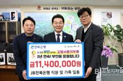 브릿지저널 윤나영 기자 | 부안군은 지난 25일 전북은행 임직원 및 가족 일동이 부안군에 고향사랑기부금 1140만원을 기탁했다고 밝혔다. 전북은행은 앞서 2023년 700만 원, 2025년 700만 원의 고향사랑기부를 실천한 바 있으며, 이번 기탁까지 이어지며 지역 상생을 위한 꾸준한 참여를 이어가고 있다. 금융기관의 사회적 책임을 실천하는 차원에서 임직원과 가족이 함께 뜻을 모았다는 점에서 의미를 더했다. 이날 기탁식에는 최종구 전북은행 부행장이 참석해 지역과 함께 성장하겠다는 의지를 전했다. 전북은행이 속한 JB금융그룹은 ‘젊고 강한 강소 금융그룹’을 비전으로 내세우며, 효율적인 자본 배분과 체계적인 관리시스템 구축, 미래 성장동력 확충을 통해 변화하는 금융 환경 속 혁신을 이어가고 있다. 최종구 부행장은 “지역과 함께 성장하는 금융기관으로서 사회적 책임을 다하는 것은 중요한 가치”라며 “고향사랑기부를 통해 지역 발전에 보탬이 되길 바란다”고 말했다. 부안군은 이번 기탁을 지역과 금융기관 간 협력의 사례로 보고 있으며, 기부금은 군민 복지와 지역 발전을 위한 기금사업에