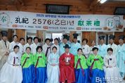 브릿지저널 정보영 기자 | 대설위 상주향교에서는 2025년 9월 28일 명륜당과 대성전에서 공부자(孔夫子) 탄강(誕降) 2576년을 맞아 50여 명의 상주시 관내 여성회원들이 참여한 가운데 ‘공부자 탄강 경축 헌다례’를 성대하게 올렸다. 상주향교의 헌다례는 상주차문화원과 상주향교 사회교육원 다도반원들이 주축이 되어 국가유산청의 ‘우리고장 국가유산 활용사업’의 일환으로 봉행했다. 헌관에는 임현숙 원장이 초헌관으로 집전을 했다. 동분헌관에는 박춘옥, 이진계씨, 서분헌관에는 박영화, 추귀분씨, 집례는 이재연씨, 대축에는 우명옥씨, 묘사는 조재석 교육원장, 알자에는 이미경씨, 찬인에는 이연옥, 양현진씨 그리고 전다에는 남윤자, 김선희씨, 점다에는 김경순씨, 봉향에는 천세연씨, 봉로에는 김숙희씨, 봉다에는 서옥희씨, 사세에는 최장은씨, 제생으로는 김명희, 김귀순, 안용당, 이정희 씨가 수고를 했다. 헌다례 행사는 전폐례(奠幣禮), 헌다례(獻茶禮), 분헌례(分獻禮), 음복례(飮福禮), 망요례(望燎禮) 순으로 진행했으며, 정성껏 달인 차를 비롯하여 오성위에는 2변 2두를, 종향위에는 1변 1두를 진설하여 회원 모두가 정성을