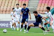 브릿지저널 김경미 기자 | 진주시민축구단이 안방에서 승리를 거두며 2026 K4리그 단독 선두로 올라섰다. 진주시민축구단은 지난 19일 진주종합경기장에서 열린 금산인삼FC와의 7라운드 홈경기에서 경기 종료 직전 터진 윤도원의 결승골에 힘입어 1-0 승리를 거두었다. 이로써 진주는 6연승을 달성하며 리그 선두로 나섰다. 특히 이날 경기는 진주시장애인축구협회 선수단이 진주시민축구단 선수들과 손을 맞잡고 에스코트 파트너로 나서며 의미를 더했다. 진주시민축구단은 전반 초반부터 강한 전방 압박으로 경기를 운영했다. 전반 중반 주장 임민혁이 부상으로 교체되는 변수가 있었지만, 진주시는 크게 흔들리지 않고 경기 흐름을 유지했다. 높은 점유율을 바탕으로 측면을 활용한 공격을 전개했으나, 금산인삼FC의 수비에 막혀 전반은 득점 없이 종료됐다. 후반 들어 진주시민축구단은 공격적으로 나섰다. 이동규의 슈팅이 상대 골키퍼 선방에 막히는 등 득점 기회를 살리지 못했고, 경기는 무승부로 이어질 가능성이 높아지는 흐름 속에서 추가시간으로 접어들었다. 결정적인 장면