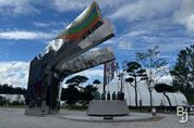 브릿지저널 김경미 기자 | 영동세계국악엑스포조직위는 영동세계국악엑스포 개막과 함께 행사장 내에 설치된 상징조형물인 ‘전통의 울림, 미래를 울리다’의 제막식을 26일 개최했다고 밝혔다. 이날 제막식에는 국악엑스포 공동위원장인 정영철 영동군수, 윤영달 크라운해태 회장을 비롯해 민의식 국악 엑스포 집행위원장, 신현광 영동군의회 의장 등 주요 내빈이 참석해 자리를 빛냈다. 국악엑스포 상징조형물은 복합문화예술회관 옆에 높이 6미터, 세로 8.7미터, 가로 6.7미터 규모로, 금속 조각가 심병건 작가가 제작했다. ‘ㄱ’자 기울기에서 가장 맑은 소리를 내는 115도로 깎는 편경을 모티브로 하여 제작된 기하학적 구조의 세 개의 기둥은 국악이 지닌 맑고 청아한 울림을 형상화한다. 또, 음의 파동과 리듬으로 시각화된 율관과 한국 고유의 정체성을 의미하는 오방색 띠로 열린 세계를 향해 뻗어 나가는 에너지를 나타낸다. 세 개의 기둥과 함께, 중앙의 상단에 편종과 편경을 의미하는 파이프를 조형하여 ‘울림과 진동’이 이곳에서 시작돼 세상에 울려 퍼져나감을 표현했다. 16개의 편종은 관람객들이 각각을 두드려 직접 울림과 진동