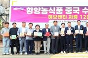 브릿지저널 김경미 기자 | 함양군은 30일 함양읍 허브앤티(대표 허정탁)에서 호박팥차, 호박차, 보리차 등 차류 제품의 중국 수출 선적식을 가졌다. 이날 행사에는 진병영 함양군수, 김윤택 함양군의회 의장 및 군의원, 노춘석 농협은행 함양군지부장, 정영재 함양군농협조합공동사업법인 대표, 수출 관계자 등 30여 명이 참석했다. 허브앤티의 수출 제품은 초기 물량 4,000만 원 규모로, 차류 호박팥차, 호박차, 보리차 등 12종의 제품이 중국 항저우 현지 대형마트 8개소와 온라인매장 10여 곳에서 판매될 예정이다. 또한 이번 중국 수출은 지난해와 올해 함양군 주최로 열린 ‘중국 광저우 수출상담회 및 베이징 수출상담회’에 참여한 성과로, 함양 농식품의 수출 판로를 확장했다는 데 큰 의미가 있다. 허브앤티는 호박팥차, 히비스커스, 유자차 등 차류 제품을 주로 생산하는 업체로, 주로 쿠팡 등 온라인몰에서 많은 매출을 올리며 국내에서도 큰 인기를 끌고 있다. 위 제품들은 관내 늙은호박을 100톤가량 수매하여 가공했으며, 호박재배 농가에 새로운 판로를 제공하고 있으며, 향후 함양 농식품 수출 증대에