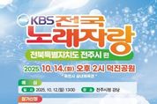 브릿지저널 윤나영 기자 | 가을이 내려앉은 전주덕진공원에서 대한민국 국민 프로그램인 ‘KBS 전국노래자랑’이 펼쳐진다. 전주시는 오는 14일 오후 2시, 덕진공원 특설무대에서 시민과 함께하는 전국민적 노래 경연 프로그램인 ‘KBS 전국노래자랑 전주시편’이 진행된다고 10일 밝혔다. 이번 녹화에는 지난 9월 선착순으로 모집한 300팀의 예심 참가자들 중 치열한 경쟁을 거쳐 본선 진출에 성공한 참가자들이 무대에 올라 각자의 재능과 열정을 선보이게 된다. 특히 이번 전주시편 예심에는 접수가 시작된 지 이틀 만에 선착순 300팀이 마감될 정도로 전주시민들의 높은 관심과 참여 열기를 나타내기도 했다. 이날 본선 녹화 현장에는 2000여 명의 시민 관람객이 함께할 것으로 예상되며, 세대를 아우르는 흥과 끼가 어우러진 대규모 시민 축제의 장으로 꾸며질 예정이다. 시는 이번 행사가 시민 화합은 물론, 전주의 문화·관광적인 매력을 전국적으로 알리는 계기가 될 것으로 기대하고 있다. 전주시 관계자는 “전국노래자랑은 대한민국을 대표하는 국민 참여형 프로그램으로, 시민 누구나 주인공이 될 수