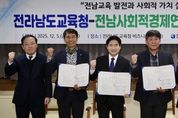 브릿지저널 김경미 기자 | 전라남도교육청과 전남사회적경제기업연합회(전남사회적기업협회, 전남마을기업협의회, 전남자활기업협회)는 12월 5일 전라남도교육청에서 ‘건강한 교육환경 조성 및 지역사회와 상생발전을 위한 업무협약’을 체결했다. 양 기관은 이번 협약을 통해 전남교육 발전 및 사회적 가치 실현을 위해 협력을 강화하기로 했다. 이번 협약을 통해 양 기관은 ▲ 전남사회적경제연합회의 생산품 구매 및 판로 확대 지원 ▲ 지역의 미래와 희망을 만드는 사회적경제 교육 위탁 ▲ 창의적 체험활동 및 직업체험 프로그램 운영 ▲ 인적ㆍ물적 자원 활용에 대한 정보 교환 및 연계 등을 상호 협력해 추진키로 했다. 전남교육청은 이번 협약을 계기로 지역에서 활동하는 전남사회적경제연합회가 교육의 동반자로서 학생들이 지역에서 배우고 성장할 수 있는 협력 모델이 되기를 기대한다. 김대중 전남교육감은 “오늘 협약이 전남교육의 경쟁력을 높이는 중요한 계기로 이어지기를 바란다.”면서 “앞으로도 지역과 함께 성장하는 교육, 사람과 사람을 잇는 따뜻한 교육 실현을 위해 사회적경제연합회와 협력을 강화하겠다.”고 말했다.