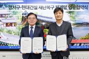 브릿지저널 김경미 기자 | 서울 강서구는 15일 폭설, 수해와 같은 자연재해에 보다 신속히 대응하기 위해 현대건설(대표이사 이한우)과 손을 맞잡았다. 구는 이날 구청에서 현대건설과 ‘민간위험시설물 긴급 복구 지원’을 위한 업무협약을 체결했다. 협약식에는 진교훈 구청장을 비롯해 김태희 현대건설 건축사업부장 등이 참석했다. 협약에 따라 양측은 자연재해 복구 활동에 적극 협력하기로 했다. 주요 내용은 피해 복구 작업에 필요한 굴삭기, 덤프, 지게차 등 장비 긴급 투입, 신속한 복구를 위한 대민지원 등이다. 진교훈 구청장은 “이번 협약으로 예기치 못한 자연재해가 발생했을 때 신속한 복구가 이뤄질 것으로 기대한다”며 “자연재해 대응 안전망을 더욱 공고히 구축해 나가겠다”고 말했다. 한편, 업무협약식과 함께 이웃돕기 성금 전달식도 진행됐다. 현대건설과 인창개발(회장 김영철)은 어려움에 처한 지역 주민을 위해 써달라며 성금 3천만 원을 기탁했다.