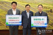 브릿지저널 정보영 기자 | 현대강업(주)(회장 이상춘)과 자회사 현대이노베이션(주)(대표 양희성)은 30일 지역 인재 육성과 교육 발전을 위해 각각 1,000만 원씩, 총 2,000만 원의 장학금을 (재)경주시장학회에 기탁했다. 2000년에 설립된 현대강업(주)는 열연·냉연·도금 강판과 특수강을 취급하는 철강 전문업체로, 경주시 외동읍 내외로에 본사를 두고 있다. 특히 이상춘 회장은 지금까지 총 6,000만 원의 장학금을 기탁하며 꾸준한 지역사랑을 이어오고 있다. 자회사인 현대이노베이션(주)는 2004년 설립된 자동차 전장부품 전문업체로, 사출금형 제작과 성형·조립 기술력을 기반으로 한 경쟁력을 갖추고 있으며 역시 외동읍 내외로에 위치한다. 이상춘 회장과 양희성 대표는 “지역 출신의 우수한 학생들이 희망을 잃지 않고 훌륭한 인재로 성장하는 데 도움이 되길 바란다”며 “앞으로도 지역사회와 상생하며 지속 가능한 사회공헌 활동을 이어가겠다”고 밝혔다. 주낙영 경주시장(경주시장학회 이사장)은 “자라나는 학생들과 지역의 어려운 이웃을 위해 소중한 나눔을 실천해 준 현대강업과 현대이노베이션에 깊이