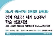 브릿지저널 김경미 기자 | 인천연구원은 2026년 3월 21일 오후 2시 30분, 청라블루노바홀에서 “검여 유희강의 예술세계 재조명과 K-Culture로의 확장”을 주제로 '제13차 현장동행 정책대화'를 개최한다. 인천연구원이 2026년부터 본격 시행 중인 ‘현장동행 정책대화’의 일환으로 마련된 이번 행사는 검여 유희강 서거 50주년을 기념해 인천서구문화재단과 공동주관으로 개최되며, 그의 예술세계와 정신을 재조명하고 K-Culture로의 확장 가능성을 모색하는 학술 심포지엄으로 진행될 예정이다. 이날 개회식에서는 김성하 인천서구문화재단 대표이사가 개회사를, 강범석 인천광역시 서구청장과 최계운 인천연구원장이 축사를 맡는다. 이어 진행되는 첫 번째 발표에서는 박재복 경동대학교 국제융합학부 교수가 “검여 유희강의 위상 재정립과 예술정신 계승”을, 두 번째 발표에서는 안현정 성균관대학교 박물관 학예실장이 “검여 예술의 현대적 해석과 공공문화·동시대 활용 가능성 확장 논의”를 주제로 발표한다. 종합토론 사회는 전 경기도박물관 관장인 이동국 독립큐레이터가 맡으며, 토론에는 김창수 인하대학교 초빙교수, 최영화