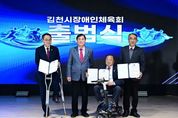 브릿지저널 정보영 기자 | 김천시장애인체육회는 2월 25일 김천시청 3층 강당에서 ‘스포츠 중심도시 김천에서 장애인과 비장애인 모두가 함께하는 스포츠 환경 조성’을 위한 김천시장애인체육회의 공식 출범식을 가졌다. 이번 행사에는 배낙호 회장을 비롯하여 장애인체육회 임원 등 300여 명의 내빈들이 참석하여 장애인체육회의 힘찬 출범을 알렸다. 행사는 장애인과 비장애인이 조화롭게 어우러지는 김천의 미래를 그리듯 시립교향악단의 연주와 시립합창단의 합창으로 구성된 식전 공연으로 시작됐으며, 여상규 상임부회장의 출범선언, 손태옥 사무국장의 경과보고가 진행됐다. 이어 회기의 릴레이 전달, 도장애인체육회의 인준패 전수, 공로패 수여, 가맹단체 인준서 수여가 진행됐으며, 배낙호 회장의 기념사, 안용우 도장애인체육회 상임부회장 격려사, 나영민 의장, 박선하 도의원, 최한동 김천시체육회장의 축사와 떡케이크 절단 퍼포먼스가 이어졌다. 김천시는 2024년 12월 2일 장애인체육회 설립추진계획을 수립하고 12월 11일 설립준비위원회 구성, 수차례의 회의를 거치고 규약 및 제규정의 제정, 인력채용 및 사무실 인프라 구축 등 설