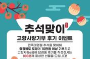 브릿지저널 김경미 기자 | 충북도는 다가오는 추석을 맞아 지역사랑과 나눔 문화를 확산하기 위해 ‘고향사랑기부제’ 특별 이벤트를 9월 24일부터 10월 20일까지 진행한다. 이번 이벤트는 충청북도청에 10만원 이상 기부하고, 고향사랑e음에 답례품 후기를 작성한 기부자들을 대상으로 한다. 10자 이상의 글 작성 또는 상품 후기 사진 등록 중 하나를 완료하면, 자동으로 경품 추첨에 응모된다. 경품은 총 100개로, 충북의 인기 중소기업 제품인 잡곡, 유과, 김, 사과즙, 오란다 등 각 품목별로 20개씩 준비되어 있으며, 당첨자는 10월 30일에 발표된다. 당첨자에게는 개별 연락 후 경품이 택배로 배송될 예정이다. 최병희 도 행정국장은 “이번 추석 이벤트가 지역 주민들이 고향에 대한 사랑과 나눔을 실천하는 좋은 계기가 되길 바란다”며, “많은 분들의 관심과 참여를 부탁드린다”고 전했다.