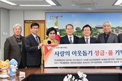 브릿지저널 김경미 기자 | 진주시복지재단(이사장 이성갑)은 15일 진주시청 기업인의 방에서 지역사회 기업 ·기관·단체의 어려운 이웃돕기 성금품 기탁식을 가졌다. ㈜이번 기탁식에서 ㈜씨엔텍코리아 진주지점(대표 김영연, 제정열)에서 성금 2,000만 원을, 이수기술단㈜(대표 황국주)에서 성금 2,000만 원, NH 농협 도농상생본부와 진주시지부(지부장 이태용)에서 백미 10kg 375포(환가액 1,200만 원 상당)를, 신평새마을금고(이사장 하성식)에서 성금 500만 원, 진주시기독교총연합회(회장 박형호)에서 성금 500만 원, 대한전문건설협회 경상남도회 진주시운영위원회(위원장 박동식)에서 성금 500만 원, (사)한국부인회 경남지부 진주지회(회장 신부연)에서 성금 200만 원을 지역사회 저소득층 및 장애인 복지 지원을 위해 기탁했다. 이날 기탁식에 참석한 기업 ·기관·단체 관계자는 “지역사회 소외된 이웃에게 조금이나마 도움이 되길 바라며, 앞으로도 지역사회를 위한 나눔 활동에 적극 동참하겠다”고 밝혔다. 조규일 진주시장은 “어려운 시기에 따뜻한 나눔을 실천해 주셔서 감사드린다” 며 “기탁해 주신 성금은 소외된 이