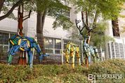 브릿지저널 정보영 기자 | 대전 유성구는 구청에 설치된 공공미술 프로젝트 작품에 대한 대대적인 정비를 통해 일상 속 미술관으로 재탄생했다고 13일 밝혔다. 유성구청 뒤편 벽면과 양쪽 울타리, 인근 어은동안녕센터 마당에는 박종욱 작가의 벽화 ‘커뮤토피아(Commutopia)’를 비롯해 조형물 ▲시선(작가 한주영) ▲인사하는 원숭이(염석인) ▲안녕마을(김진) ▲피노키오의 생각(김봉수) ▲유토피아(작가 김우진) 등 총 6개 작품이 설치되어 있다. 벽화 ‘커뮤토피아’는 다양한 조각들이 어우러져 하나의 공동체를 이루는 모습을 형상화했으며, 5점의 조형물은 각각 부엉이, 원숭이, 물고기, 피노키오, 사슴 등 친근한 형상을 통해 유성구의 정체성을 예술적으로 표현했다. 코로나19 유행 시기인 지난 2020~2021년 정부의 공공미술 프로젝트를 통해 설치된 작품들로, 이 사업은 코로나19로 어려움을 겪는 예술인을 지원하는 동시에 지역민에게는 미술작품을 감상할 수 있는 기회를 제공하기 위해 추진됐다. 유성구는 매년 부분적인 정비를 통해 벽화와 조형물을 원형 그대로 유지하기 위해 노력하고 있으며, 특히 올해는 최근 작