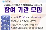 브릿지저널 김경미 기자 | 여수시는 지역 내 장애인의 평생학습권 보장과 자립생활 능력 강화를 위해 '2026년 장애인 평생학습강좌 지원사업'에 참여할 기관·단체를 모집한다. 이번 사업은 장애인과 느린학습자를 대상으로 평생학습 프로그램 운영을 지원해 지속적인 배움과 사회참여 기회를 확대하고 비장애인과 함께하는 학습 환경을 조성해 장애 인식 개선과 지역사회 소통·협력 문화 확산에도 기여하고자 한다. 사업 운영 기간은 4월부터 10월까지이며, 공고는 3월 9일부터 24일까지 16일간 진행된다. 신청 접수는 3월 23일부터 24일까지 이틀간 받는다. 모집 대상은 여수시 소재 평생교육기관 및 단체로, 총 5개 기관·단체를 선정해 1개소당 최대 240만 원의 강사수당을 지원할 계획이다. 지원 분야는 ▲기술 습득을 통한 직업역량 강화 프로그램 ▲자아실현을 위한 문화예술 프로그램 ▲소통·협력을 위한 사회활동 참여 프로그램 등이다. 특히 장애인과 비장애인 간 교류를 통한 장애인식 개선과 자립생활 역량을 높이는 데 중점을 둔다. 신청은 방문 접수로 진행하며, 지원서 양식은 여수시 누리집 공고문에서 확인할