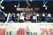 브릿지저널 김경미 기자 | 합천군은 9월 26일 정양 레포츠공원 일원에서 2025년 청년의 날을 기념하기 위해 개최한 ‘별밤달빛 청년 야행’ 행사를 성황리에 마무리했다고 밝혔다. 이번 행사는 청년의 권리를 존중하고, 지역 청년들의 목소리를 모아 미래를 함께 그려나가기 위한 취지로 마련됐으며, 특히 합천청년정책네트워크가 직접 기획하고 주도해 행사의 의미를 더했으며, 청년 50여 명이 함께 참여해 높은 관심과 열띤 호응을 보였다. 행사는 제2회 슈퍼스타HC 우승자인 변혁진 기타리스트의 축하공연으로 시작됐고, 이어서 청년 선언문 낭독, 청년 비전 선포식, 명사 초청 토크콘서트 등 청년이 주체가 되는 다양한 프로그램이 이어졌다. 특히 ‘청년이 빛나는 합천’ 비전 선포식에서는 김윤철 군수와 군의원이 함께 무대에 올라, ▲청년 주도의 정책 발굴 및 실현, ▲지역 청년 문화 활성화, ▲청년 정주 여건 개선, ▲청년 창업 지원 등을 골자로 하는 공동 비전을 공식 선언하고 서명을 통해 실천의 의지를 다졌다. 마지막 순서로는 개그맨 정진영이 함께한 청년 토크콘서트가 펼쳐져 청년들이 직접 사전에 제출한 고민과 사연에