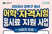 브릿지저널 김경미 기자 | 서울 강북구는 미취업 청년의 취업 준비 비용 부담을 덜기 위해 ‘청년 어학·자격시험 응시료 지원 사업’을 전년보다 확대 시행하고, 총 900명을 모집한다. 이는 지난해보다 200명 늘어난 규모다. 이번 사업은 취업 준비 과정에서 반복적으로 발생하는 시험 응시료 부담을 완화하고 청년들의 자기계발과 취업 역량 강화를 지원하기 위해 추진된다. 구는 예산을 확대해 더 많은 청년이 혜택을 받을 수 있도록 지원 인원을 늘렸다. 지원 대상은 신청일 기준 강북구에 주민등록이 되어 있거나 강북구 소재 대학에 재학 또는 휴학 중인 19세 이상 39세 이하 미취업 청년이다. 지원 대상 시험은 2026년 1월 1일 이후 응시한 ▲어학시험 ▲국가기술(전문)자격시험 ▲국가공인 민간자격시험 ▲한국사능력검정시험 등이며, 응시 횟수와 관계없이 1인당 최대 10만원 범위에서 실제 응시료를 지원한다. 신청기간은 2026년 4월 1일부터 12월 11일까지이며, 신청을 원하는 청년은 구비서류를 갖춰 일자리청년과(도봉로 323 용신빌딩 2층)로 방문하거나 이메일로 제출하면 된다. 다만 서울시 청년수