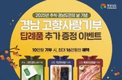 브릿지저널 김경미 기자 | 경상남도는 추석과 ‘경남도민의 날’(10월 14일)을 맞아, 고향사랑기부제 참여 분위기를 확산시키기 위한 홍보 활동과 경품 이벤트를 추진한다. 이번 행사는 명절과 기념일을 활용해 귀성객·관광객은 물론, 도민들에게 고향사랑기부제의 취지를 널리 알리고, 기부 참여를 독려하기 위해 마련됐다. 특히 9월 29일부터 10월 19일까지 21일간 ‘고향사랑기부 경품 이벤트’를 진행한다. 이 기간 동안 경상남도에 10만 원 이상 기부하고 답례품을 신청한 기부자는 자동으로 응모되며, 무작위 추첨을 통해 총 30명을 선정한다. 당첨자에게는 새롭게 등록된 답례품이 경품으로 증정된다. 경품은 △산청 흑돼지 삼겹살(10명), △창원 아귀포(10명), △하동 그린티 랑드샤(10명) 등 지역 특색을 살린 인기 제품들로 구성됐다. 이와 함께 창원시를 포함한 도내 9개 시군(통영‧김해‧함안‧창녕‧하동‧산청‧거창‧합천)에서도 자체 고향사랑기부 이벤트를 병행 실시한다. 각 시군은 지역 특색을 살린 다채로운 홍보와 추가 혜택을 통해 기부 참여를 이끌어낼 계획이다. 경남도는 이번 행사를 계기로 기
