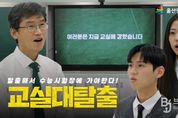 브릿지저널 윤나영 기자 | 울산광역시교육청은 대학수학능력시험을 앞두고 수험생을 응원하는 영상을 제작해 6일 울산교육청 유튜브에 공개했다. 10분 40초 분량의 영상에는 천창수 교육감과 함월고등학교 3학년 학생 2명이 함께 출연해, 교실을 배경으로 임무를 수행하며 따뜻한 응원 메시지를 전한다. 영상은 ‘교실 탈출’이라는 주제로 방 탈출 게임 형식으로 구성됐다. 교실 안에서 주어진 문제를 단계적으로 해결해 교실을 탈출하는 방식으로, 교육감과 학생들이 협동해 문제를 풀어나간다. 영상의 도입부는 ‘오늘은 11월 13일 목요일, 대학수학능력시험일입니다. 여러분은 지금 교실에 갇혔습니다. 주어진 문제들을 해결해 교실을 탈출하세요!’라는 안내로 시작해 몰입감을 높인다. ‘수능 당일 가장 피해야 할 행동은?’ 등 수능 상황 관련 내용이 출제된다. 참여자들은 수험표, 신분증, 아날로그 시계, 도시락 등 수능 필수 준비물을 실제로 활용해 정답을 찾는 과정이 담겨 있다. 학생들은 문제를 풀며 사물함 비밀번호 단서를 모으고, 자물쇠를 열어 수험생에게 전하는 편지를 찾으면 다음 단계