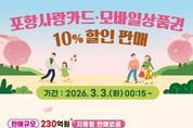 브릿지저널 정보영 기자 | 포항시가 지역 경기 회복과 민생경제 안정을 위해 내달 3일부터 카드형·모바일 포항사랑상품권(포항사랑카드) 230억 원을 10% 할인된 금액으로 판매한다. 시는 이달까지 포항사랑상품권 830억 원 발행한 데 이어, 이번 할인 판매분 230억 원 추가 발행으로 올해 연초에만 총 1,060억 원 규모의 포항사랑상품권을 유통하게 된다. 골목상권과 전통시장에 집중 공급해 지역 상권 소비를 촉진하고, 민생경제 회복을 이어간다는 취지다. 이번 할인 판매는 2월과 같은 10% 할인율이 적용되며, 개인 구매 한도는 월 40만 원, 보유 한도는 70만 원이다. 시민들의 가계 부담을 덜고 소상공인 매출 증대에도 실질적인 도움이 될 것으로 기대된다. 포항사랑카드 충전은 3월 3일 0시 15분부터 ‘iM샵 앱’ 또는 지역 내 104개 판매 대행 금융기관 영업점을 통해 가능하다. 카드 판매 대행 금융기관 현황은 포항사랑상품권 홈페이지에서 확인할 수 있으며, 시는 시민 편의를 위해 판매대행점을 지속 확대해 나갈 계획이다. 포항사랑카드는 실물 카드 결제는 물론 ▲삼성페이 ▲네이버페이 Q