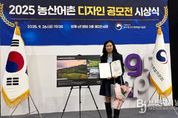브릿지저널 김경미 기자 | 남해군 회룡농촌체험휴양마을 김미정 사무장이 ‘2025 농산어촌 디자인 공모전’에서 농어업·농어촌특별위원장 표창을 수상하며 지역의 명예를 드높였다. 지난 26일 서울 aT센터에서 열린 시상식에서 김 사무장은 ‘서면 북부지역 다랑논 일대’를 주제로 한 작품으로 입상했다. 해당 공모전은 대통령 직속 농어업·농어촌특별위원회가 주최하는 행사로, 전국 지자체 및 관련 기관, 지역 주민들이 참여해 조경·건축·도시계획 등 다양한 분야에서 경쟁을 펼쳤다. 김 사무장의 작품은 남해 다랑논의 전통 경관과 농촌의 정취를 섬세하게 담아내며, 자연과 공동체가 조화롭게 어우러진 지속가능한 농촌 디자인의 모범 사례로 높은 평가를 받았다. 심사위원단은 지속가능성, 지역성, 심미성 등을 기준으로 10개 마을을 최종 선정했다. 김미정 사무장은 “지역의 자연과 사람을 존중하는 디자인이야말로 농촌의 미래를 밝히는 길이라 믿는다”며 “이번 수상은 회룡마을 주민 모두의 노력에 대한 보답”이라고 소감을 밝혔다. 2020년부터 회룡마을을 이끌어온 김 사무장은 서면 다랑논 마라톤대회 개최 등 참신한 아이디어로 공동체 활성화에 기여