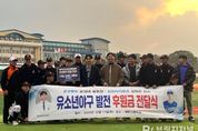 브릿지저널 정보영 기자 | 제주도교육청 제주고등학교는 11일 굳센병원 윤성대 원장과 본교 출신으로 프로야구 삼성 라이온즈에서 활약 중인 김헌곤 선수가 학교를 방문해 야구부 발전기금 1000만 원을 기탁 받았다. 이번 기탁은 제주고 출신 김헌곤 선수와의 인연을 계기로 제주고 야구부에 관심을 갖게 된 윤성대 원장의 뜻에 따라 이루어졌으며 기탁된 발전기금은 실내 훈련 환경 개선, 노후 장비 보강, 전문 훈련 프로그램 운영 등 야구부 교육활동 전반에 활용될 예정이다. 김헌곤 선수는 2025년 기준 삼성 라이온즈 야수진 가운데 가장 오랜 기간 팀에서 활약하고 있으며, ‘삼성 왕조’ 시절을 경험한 원클럽맨으로 알려져 있다. 윤성대 원장은 “제주고 야구부가 더 큰 무대에서 활약할 수 있도록 힘을 보태고 싶었다”며 “앞으로도 청소년 선수들의 성장을 위해 지속적으로 관심을 갖겠다”고 말했다. 양용혁 교장은 “제주 지역 체육 발전을 위해 뜻깊은 기탁을 해주신 윤성대 원장님과, 바쁜 일정에도 학교를 방문해 함께해 준 김헌곤 선수에게 깊이 감사드린다”고 감사를 표했다. 제주고등학교는 이번 기탁을 계기로 지역
