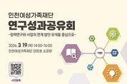 브릿지저널 김경미 기자 | 인천여성가족재단은 오는 3월 19일 2층 소강당에서 연구성과공유회를 개최한다. 이번 연구성과공유회에서는 재단에서 지난 1년 동안 수행한 연구성과를 시민과 전문가, 관계기관 담당자들과 함께 나누며, 변화하는 사회환경에 발맞춰 향후 인천시 여성가족정책의 방향을 모색하고 연구와 사업의 환류 강화을 위한 자리로 마련된 행사이다. 이번 공유회는 2025년 연구과제에 관한 총괄적인 발표에 이어 재단에서 수행한 연구과제 중 사업 운영과 직접 관련되어 수행된 여성사회교육기관 운영 개선 관련 연구와 아이사랑꿈터 운영 개선 연구가 세부 발표로 기획됐다. 연구결과가 실제 여성정책 사업의 운영과 개선에 어떻게 더 실효성 있게 반영될 수 있을지를 관계자들이 모여서 함께 토론하기 위한 자리이다. 인천여성가족재단은 여성문화회관을 운영하고 있고 아이사랑꿈터 운영지원단을 비롯하여 여성의 사회참여와 돌봄지원을 위한 다양한 사업을 운영하고 있다. 연구과제가 실질적인 인천시의 여성가족 정책사업의 운영 개선으로 확장되고 환류되기 위한 과제가 무엇인지 짚어보고 이를 위해 필요한 관계자들의 소통 증진을 위한 자리로 마련된 것