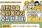 브릿지저널 김경미 기자 | 인천광역시교육청연수도서관은 시민의 자발적인 독서활동을 지원하고 독서생활화를 확산하기 위해 ‘2026년 시민자율독서동아리’를 모집한다. 독서에 관심 있는 시민들이 자율적으로 모여 책을 읽고 의견을 나누는 독서모임으로, 인천시에 거주하는 성인 5인 이상이면 시민자율독서동아리를 신청할 수 있다. 선정된 동아리는 2026년 2월부터 12월까지 활동하며, 연수도서관 내 활동공간 대관, 온라인 활동 지원, 30만 원 상당의 활동도서를 지원받는다. 신청 기간은 12월 29일부터 2026년 1월 9일까지 선착순으로 접수하며, 참여를 희망하는 동아리는 신청서를 작성해 이메일로 제출하면 된다. 자세한 사항은 연수도서관 누리집 공지사항을 확인하거나 독서문화과로 문의하면 된다.