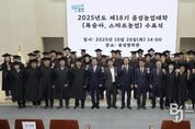 브릿지저널 김경미 기자 | 음성군농업기술센터는 지난 28일 음성농업대학 학장인 조병옥 군수를 비롯한 농업기술센터 관계자, 수료생 등이 참석한 가운데 ‘2025년도 제18기 음성농업대학 수료식’을 개최했다. 올해 음성농업대학은 복숭아, 스마트농업 2개의 과정을 개설, 지난 3월부터 10월까지 교육생 총 44명을 대상으로 과정별 약 21~22회, 90시간 걸쳐 집합 교육방식으로 진행됐다. 지역농업 전문농업경영인 배출과 농산물 고부가가치 창출 및 지역농업에 발전을 위한 이론과 현장실습 등을 병행하며 현장 대응능력 등 농업 현장의 요구에 맞춘 실질적인 지식과 기술을 습득하는 내용으로 운영됐다. 이날 엄격한 수료 기준을 통과한 복숭아과정 20명과 스마트농업과정 22명 등 총 42명이 수료증을 수여받았다. 또한 우수 수료자에 대한 시상식에서는 이순강(스마트농업 과정)씨가 농촌진흥청장상을, 정기환(복숭아 과정)씨가 음성군수상을 수상했다. 채기욱 군 농업기술센터 소장은 “지역농업 발전을 위해 본업에 바쁘신 와중에도 교육에 참여해 주신 농업인 여러분들에게 감사하다”며 “대학에서 배운 지식을 바탕으로 농