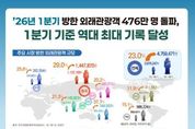 브릿지저널 김경미 기자 | 문화체육관광부는 올해 1분기(1~3월) 한국을 방문한 외국인 관광객이 약 476만 명을 기록하며, 3월 중동사태 발생에도 불구하고 1분기 기준 역대 최대 규모를 달성했다고 밝혔다. 이는 2025년 같은 기간 대비 23% 증가한 수치이며, 특히 3월에는 외래객 약 206만 명이 방한해 월별 기준으로도 최대 실적을 경신했다. ‘케이-컬처’의 세계적 인기와 더불어 민관의 적극적인 외래관광객 유치 노력이 결실을 본 것으로 분석된다. 시장별로 보면, 중국 관광객이 145만 명(+29%)을 돌파하며 가장 큰 비중을 차지했고, 일본 관광객도 94만 명(+20.2%)이 한국을 찾으며 성장세를 이어갔다. 대만 관광객은 54만 명(+37.7%)까지 증가하여 주요 시장 중 증가세가 가장 두드러졌다. 그 외 미국, 유럽 등 원거리 시장 외래객도 69만 명(+17.1%)으로 증가하며 방한 시장 다변화를 이끌었다. 올해 1분기에는 크루즈 관광 시장의 성장도 돋보였다. 제주·부산·인천 등 주요 기항지로 입항한 크루즈선은 총 338척(항차 기준)으로 전년 같은 기간 대비 52.9% 증가했다. 이는 정부가 추진해 온 기항지 관