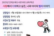 브릿지저널 윤나영 기자 | 인제교육도서관은 12월 4일 10시 학부모 16명을 대상으로 ‘부모 교육 특강’을 운영한다. 이번 특강은 색채심리를 활용해 부모와 자녀의 감정과 성향을 이해하고, 긍정적인 소통 문화를 확산하기 위해 마련됐다. 강의 주제는 ‘사랑해서 이해하고 싶은, 나와 아이의 컬러 이야기’로, 색채를 매개로 한 다양한 질문들을 통해 부모가 자신의 성향을 파악하고 내면의 감정과 가치관을 탐색할 수 있도록 구성됐다. 또한 ‘자기만의 컬러 액자 제작 만들기’, ‘나를 위한 격려 메시지 작성’ 등 체험 프로그램을 통해 감정 세계를 색으로 표현해 보는 시간을 갖는다. 참가 신청은 11월 25일 10시부터 27일 17시까지 온라인으로 접수할 수 있다. 김성훈 관장은 “이번 특강은 부모가 자신을 이해하고 자녀와의 관계를 깊이 이해하는 기회를 제공하고자 기획됐다”며, “색채심리를 활용한 이번 활동이 부모와 자녀가 함께 성장하는 건강한 학습 문화를 만드는 계기가 되길 바란다.”고 전했다.