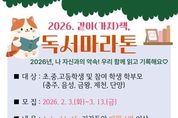 브릿지저널 김경미 기자 | 충청북도교육청 직속기관 중원교육문화원은 언제나 책봄 정책을 활성화 하기 위해 2월 3일부터 3월 13일까지 북부권 초‧중‧고등학생과 학부모를 대상으로 '2026년 같이(가치)책 독서마라톤' 참여자를 모집한다. 중원교육문화원은 3월 말 발대식을 시작으로 오는 12월까지 독서마라톤을 본격 운영할 계획이다. '2026년 같이(가치)책 독서마라톤'은 학생들이 매월 읽기와 기록, 성찰 활동을 반복하며 꾸준한 독서 습관을 기를 수 있도록 운영되는 프로그램이다. 참가자들은 다채움 플랫폼 ‘채움책방’을 활용해 시간과 장소에 관계없이 독서 활동에 참여할 수 있으며, 누적 독서량에 따라 12월에 구간별 완주증서와 기념품을 받게 된다. 참여 기준은 매월 1편 이상, 총 8회의 독후감상문을 업로드하는 것으로, 학년별 독후감상문 서식과 글자 수 기준에 따라 독서 권수가 인정된다. 독서 완주구간은 ▲소크라테스(8~16권) ▲플라톤(17~34권) ▲아리스토텔레스(35권 이상)으로 구분된다. 참여를 희망하는 학생은 중원교육문화원 누리집에서 신청할 수 있으며, 기타 문의 사항은