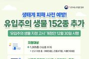 브릿지저널 김경미 기자 | 생태계 피해 사전 예방! 유입주의 생물 152종 추가 - '유입주의 생물 지정 고시' 개정안 12월 30일 시행 ■ 지정대상 - 1,005종 (152종 추가) · 신규 지정 종: 어류(5종), 곤충(47종), 식물(100종) ■ 신규로 지정된 152종 수입하려는 경우 - 사전 관할 유역(지방)환경청 승인 필요 ※ 불법 수입 시 2년 이하 징역 또는 2천만원 이하 벌금 부과 ■ 확인방법 - 기후에너지환경부 누리집 및 한국외래생물정보시스템(2026년 1월 공개) 생태계 보전을 위해 유입주의 생물 수입에 각별한 주의를 기울여 주세요!