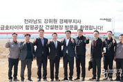 브릿지저널 김경미 기자 | 전라남도는 3일 케이(K)-미래차 산업의 핵심 거점이 될 금호타이어 함평 신공장 건설 현장에서 간담회를 열고 기업 애로사항 등을 청취한 뒤 공사 진행 상황을 점검했다. 함평 빛그린국가산업단지 내 LH빛그린사업단에서 열린 간담회에는 강위원 전남도 경제부지사, 이상익 함평군수, 임완주 금호타이어 경영기획본부장 등이 참석해 애로사항과 지원 방안을 논의했다. 간담회 직후 참석자들은 건설 현장을 찾아 공정별 추진 일정과 안전관리 체계도 점검했다. 총 6천609억 원이 투입되는 금호타이어 함평 신공장 1단계 건설 사업은 2028년 상반기 완공을 목표로 추진 중이다. 지난해 12월 창고동 착공을 시작으로 오는 4월 타이어 제조 핵심시설인 정련동과 압연동 착공을 앞두고 있다. 전남도는 공정이 차질 없이 진행되도록 인허가 절차를 지원할 방침이다. 완공 후 함평 신공장은 인공지능(AI) 기반 스마트 자동화 설비와 친환경 생산 체계를 갖춘 연간 530만 본 규모의 타이어 생산기지로 운영된다. 또한 관련 소재·부품 기업의 연쇄 투자를 촉진해 전남 서부권을 대표하는 핵심 앵커기업으로